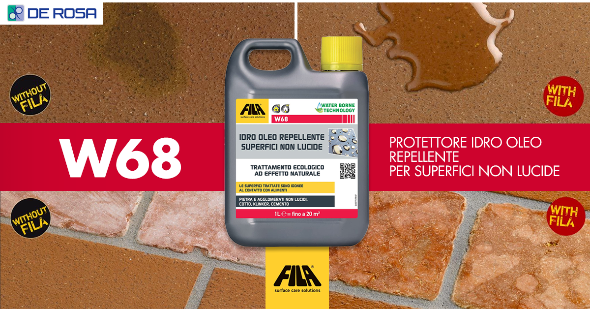 W68 di Fila Surface Care Solutions è un trattamento antimacchia progettato per impregnare e proteggere materiali assorbenti come cotto, pietra naturale non lucidata e cemento. Il prodotto agisce riducendo drasticamente l’assorbimento dello sporco oleoso senza però creare un film superficiale e soprattutto senza modificare l’aspetto estetico originale del materiale trattato.