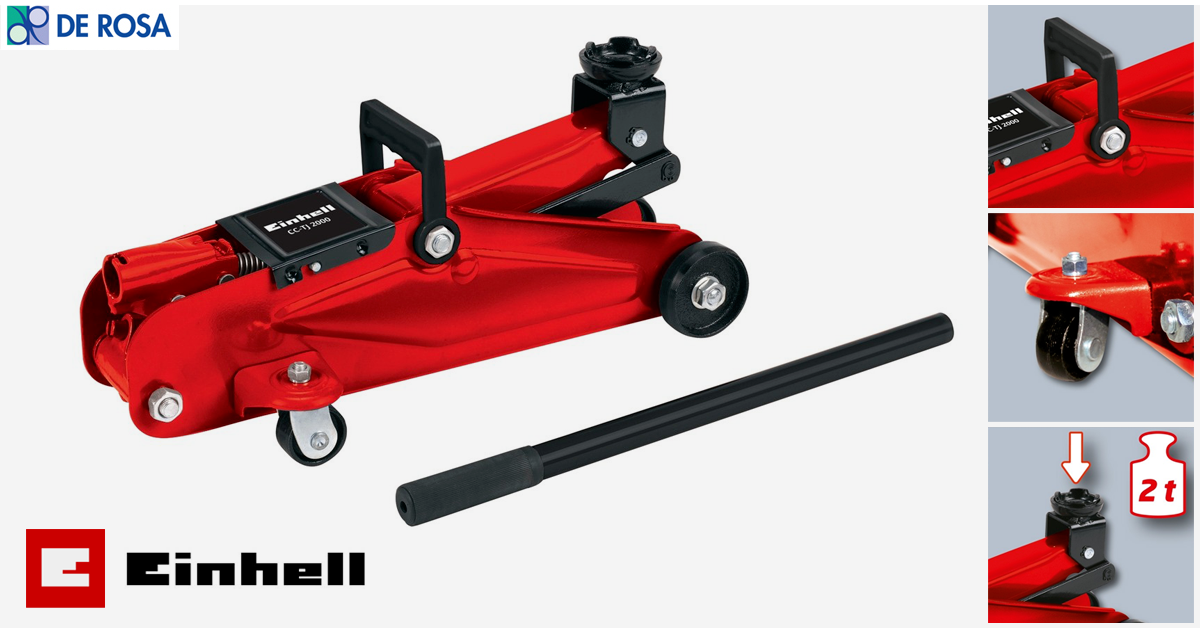 Il modello di cric idraulico Einhell CC-TJ 2000 offre in questo senso grande versatilità, e ben si presta anche agli impegni più gravosi con sollevamento sicuro grazie alla sella di supporto e all’asta di sollevamento manuale.