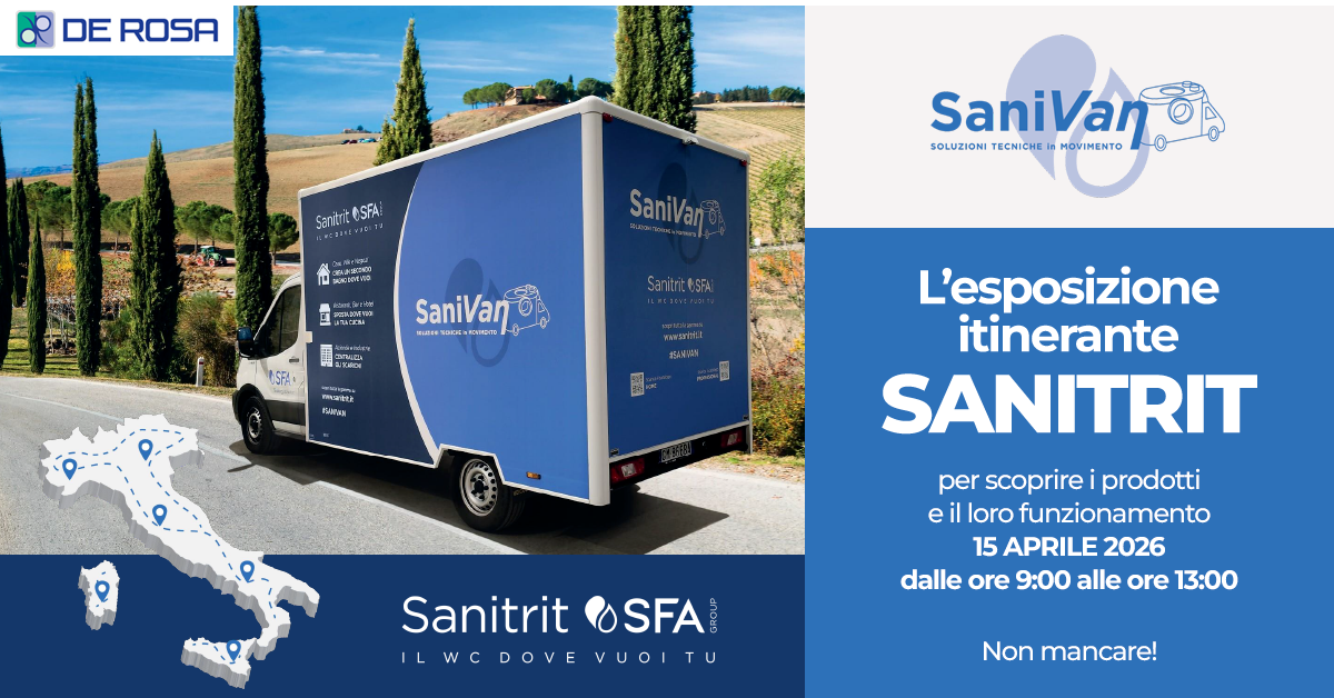 Mercoledì 15 aprile 2026 dalle ore 9:00 alle 13:00 il punto vendita De Rosa di Quarto ospiterà il SANIVAN, il progetto itinerante firmato Sanitrit pensato per portare direttamente sul territorio le soluzioni più avanzate del brand.